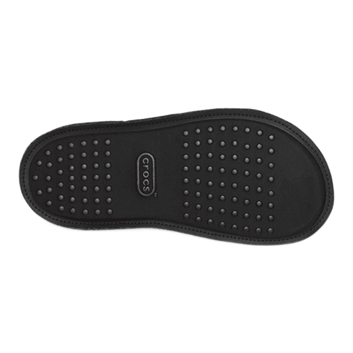 The Baya family of clogs, flips and slides gains a new member with this ultracozy mule-style slipper. A plush footbed, felt construction, and Crocs logos on the outsides of the uppers make the Baya Slipper a foolproof foot-warming delight.