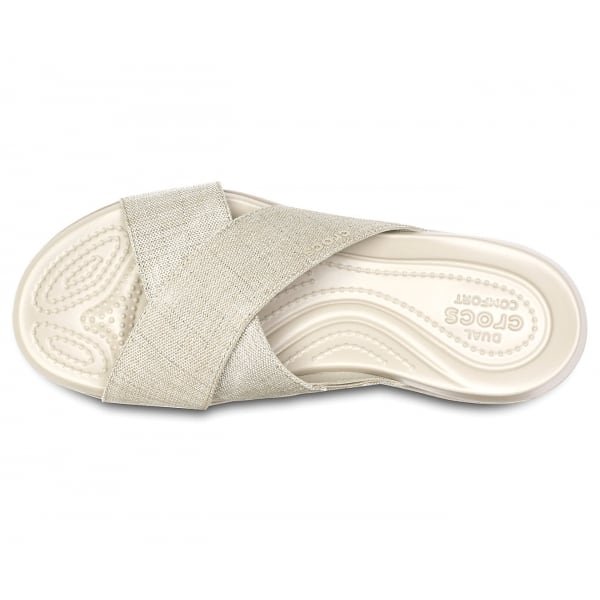 If you’re looking for a pair of prettier, more upscale slide-on sandals that refuse to sacrifice comfort for curb appeal, look no further. Featuring soft, flexible cross-bands and metallic shimmer effects, on top of our Dual Crocs Comfort™ footbeds with just the right amount of lift. They’re delightfully on trend, no compromises necessary
