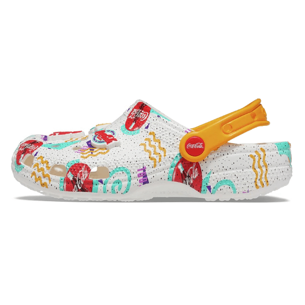 Go retro with a modern touch wearing the comfortable Crocs™ Coca Cola® X Classic 90s Clogs. Man-made upper. Man-made insole.