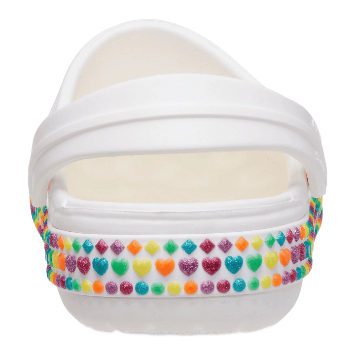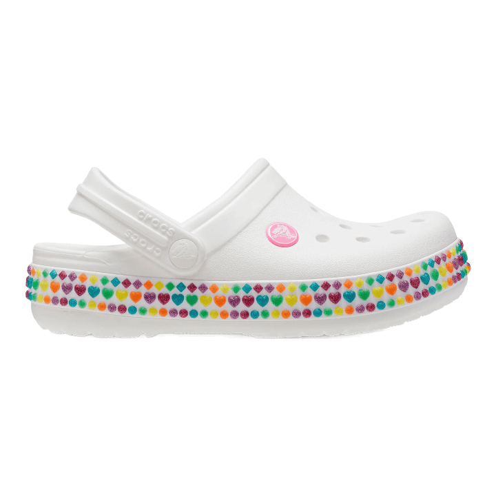 A fun new band featuring small multi-shaped gems adds a pop of sparkle and style to Crocs’ iconic Crocband™ clogs. Made with lightweight, durable Croslite™ material, the contoured footbeds and outsoles deliver incredible comfort and support for whatever the day has in store.