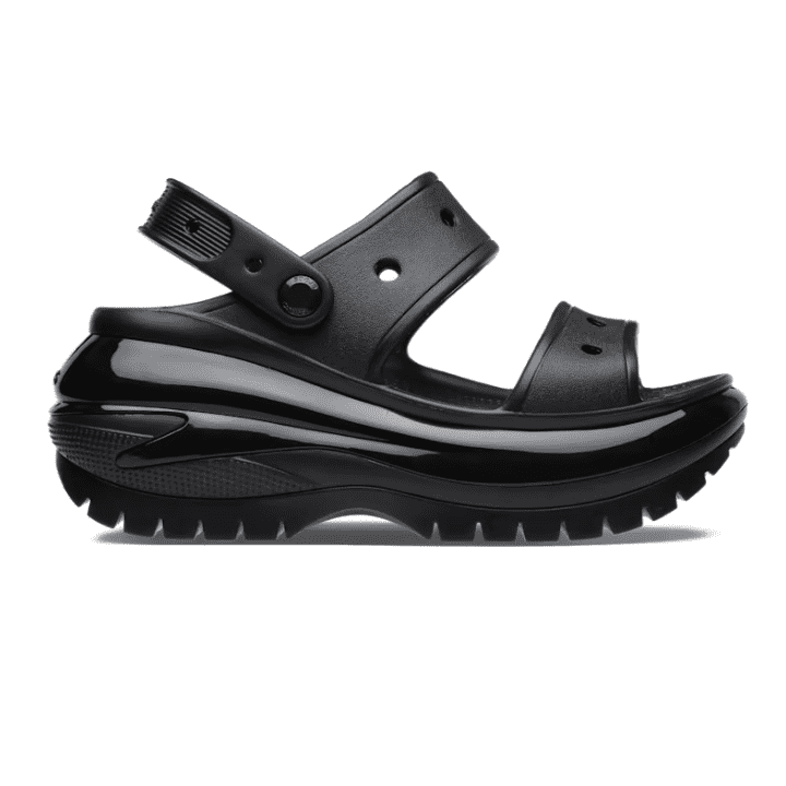 The look and feel of our Classic Mega Crush Clog is now available in sandal form. Introducing the Classic Mega Crush Sandal, featuring an enhanced rubber tread, updated detailing around the outsole and a platform ready to take any outfit to the next level. A two-strap upper and secure backstrap help ensure a secure fit, while boasting holes for personalization with Jibbitzâ„¢ charms. Are you ready for your new crush?